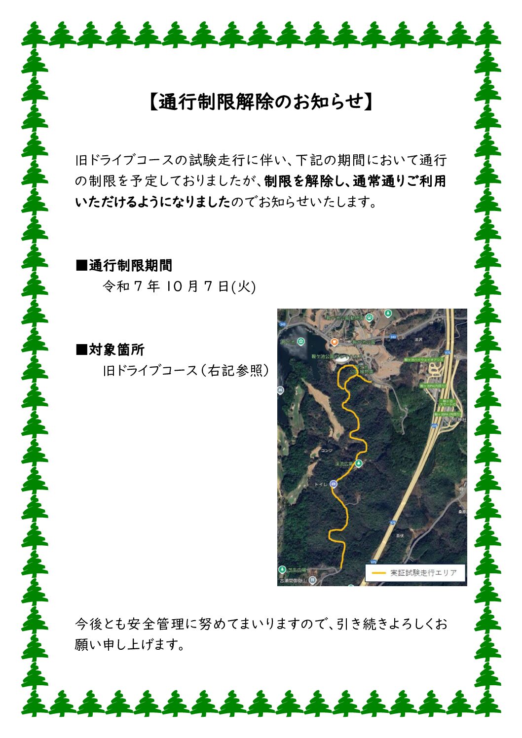 10/7(火) 旧ドライブコースの利用制限の解除のお知らせ