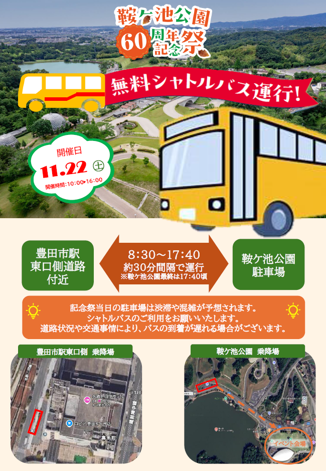 11/22(土) 鞍ケ池公園60周年祭 無料シャトルバスのご案内
