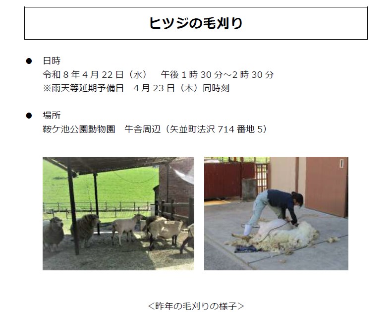 鞍ケ池公園動物園 牛舎周辺にて 午後1時30分〜2時30分 ※雨天等延期予備日 4月23日同時刻 -