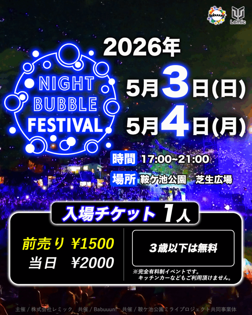 5/3(日)-4(月・祝) 『ナイトバブルフェス』開催