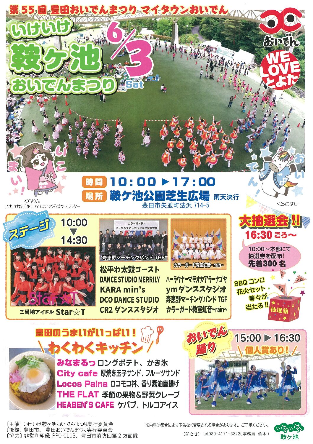 いけいけ鞍ヶ池おいでんまつり 2023 6/03 2023.05.19 第55回豊田おいでんまつりマイタウンおいでん 10:00-17:00 当日は鞍ケ池公園大屋根広場を全面にイベントにて使用しております。 *雨天決行 鞍ケ池公園で新しい移動体験の実証実験として走行します! にこるん