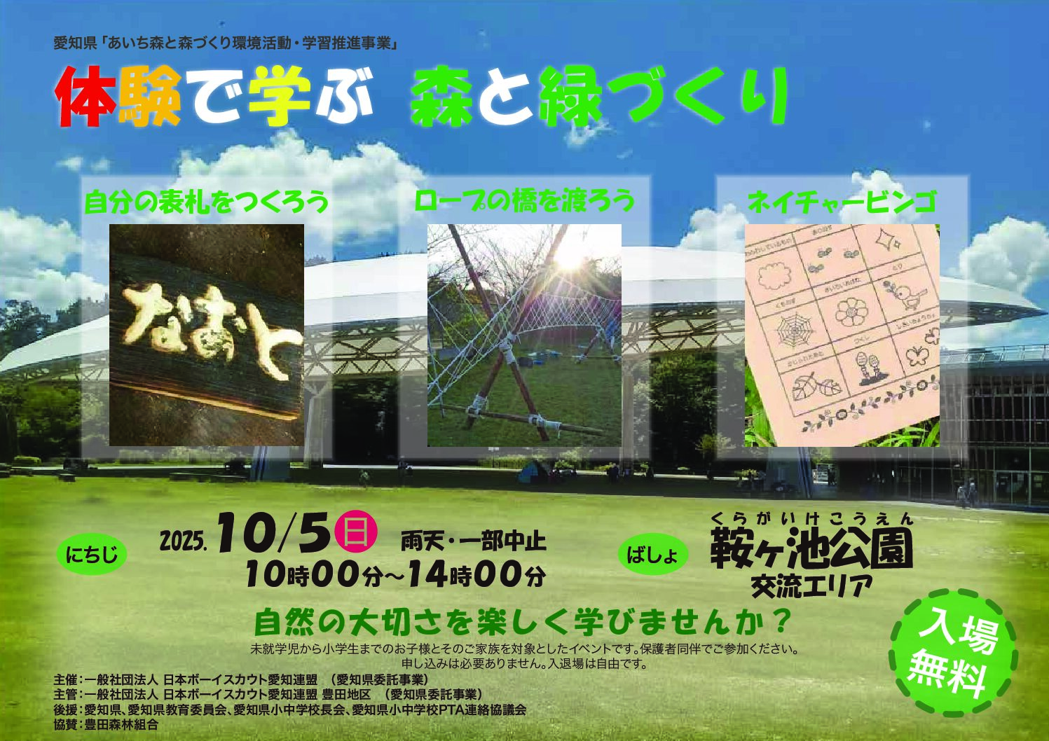 10/5(日) 10:00~14:00 体験で学ぶ森と緑づくり 2025 10/05 2025.08.27 木材で製作したモンキーブリッジを渡ったり、杉板を使った壁掛け作り、自然を探索しながらビンゴゲーム等、自然と触れ合える楽しい遊びが盛りだくさん♬ 参加をお待ちしてます🌳 ブロックでつくる夢のまち!ワークショップ 9/20(土) 10:00~16:30 わくわくキッズワールド開催