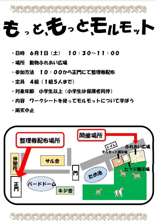 6/1(土)動物ふれあい広場 もっと、もっと、モルモット
